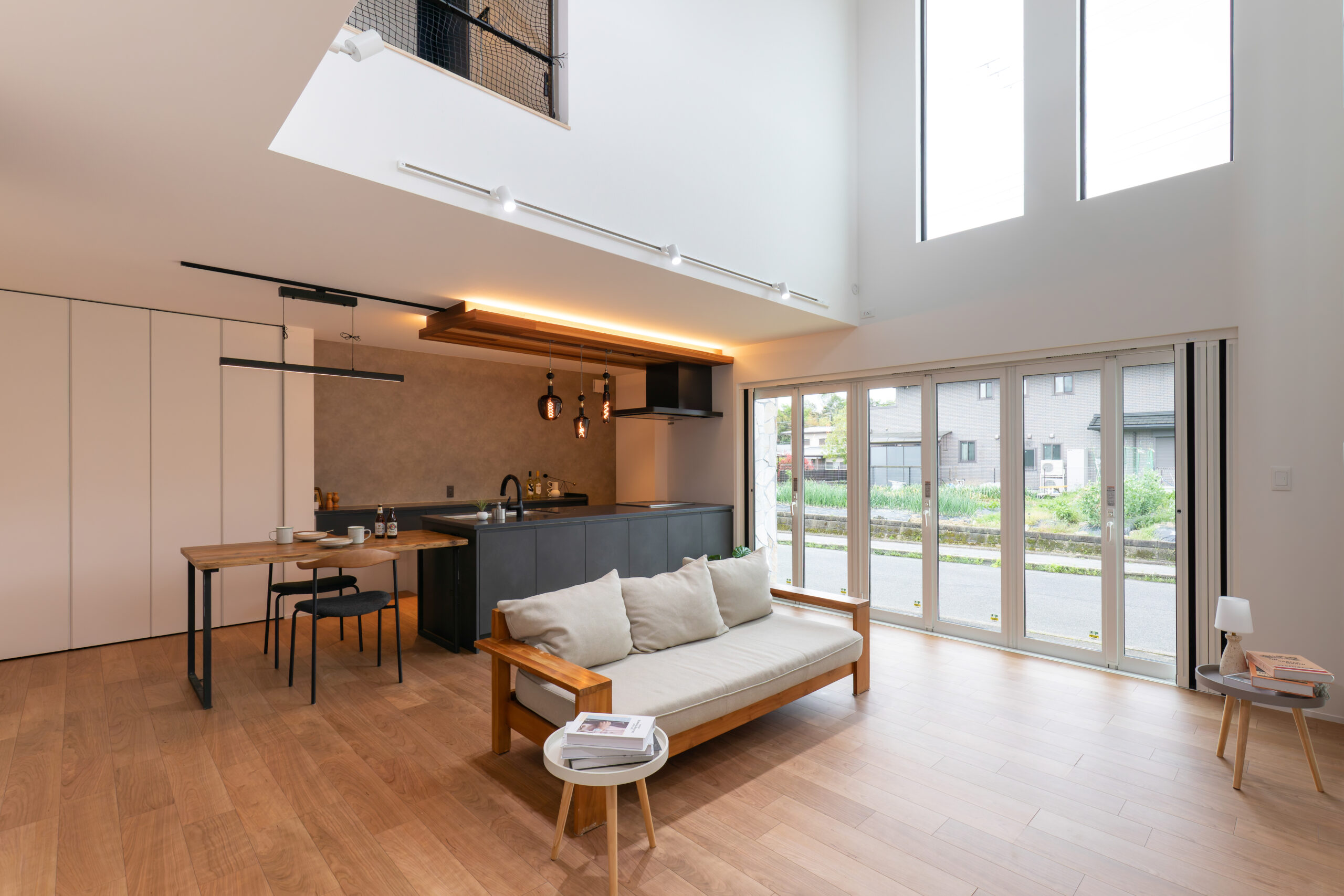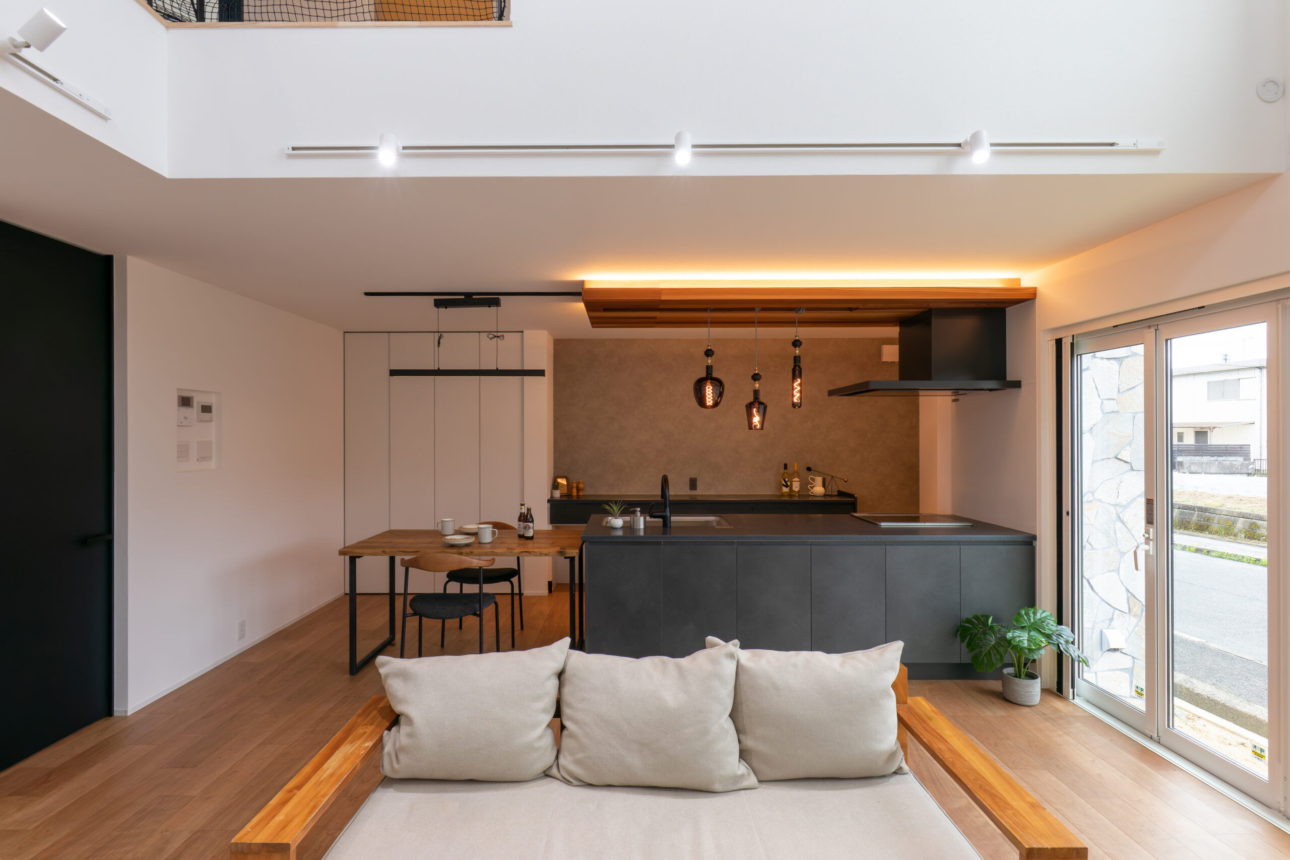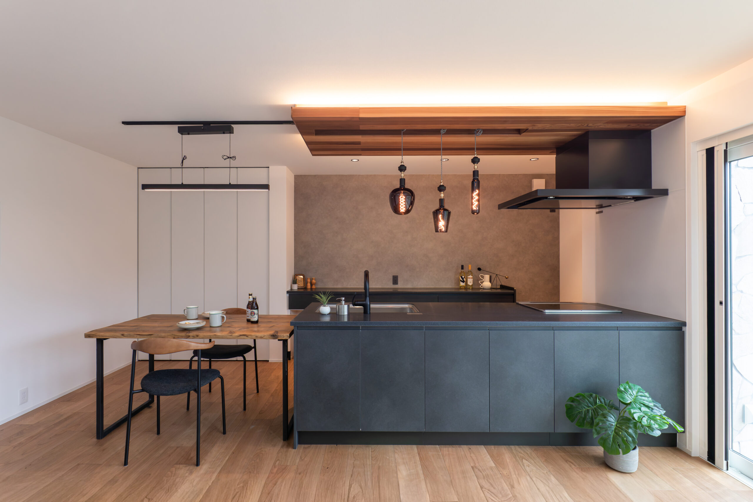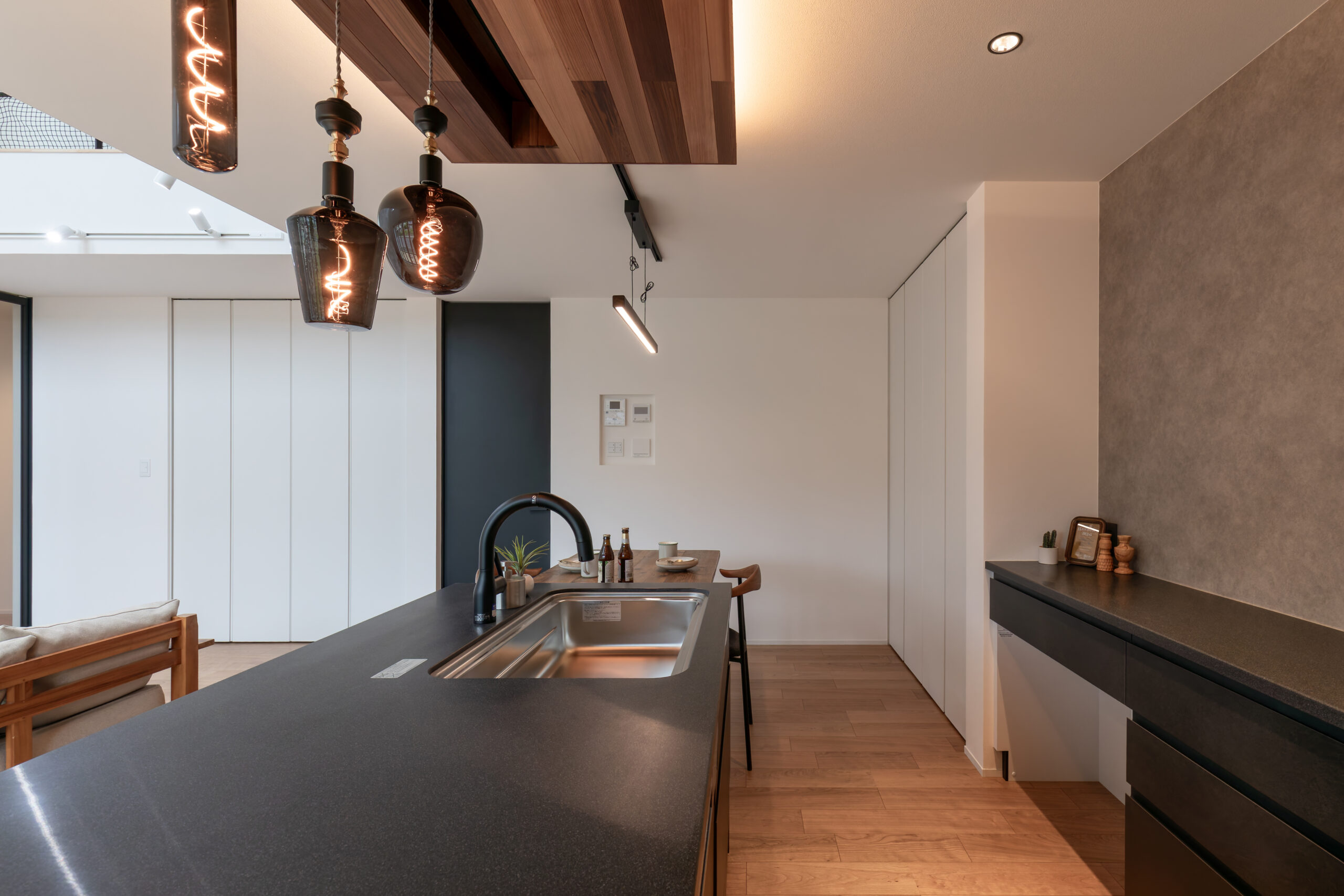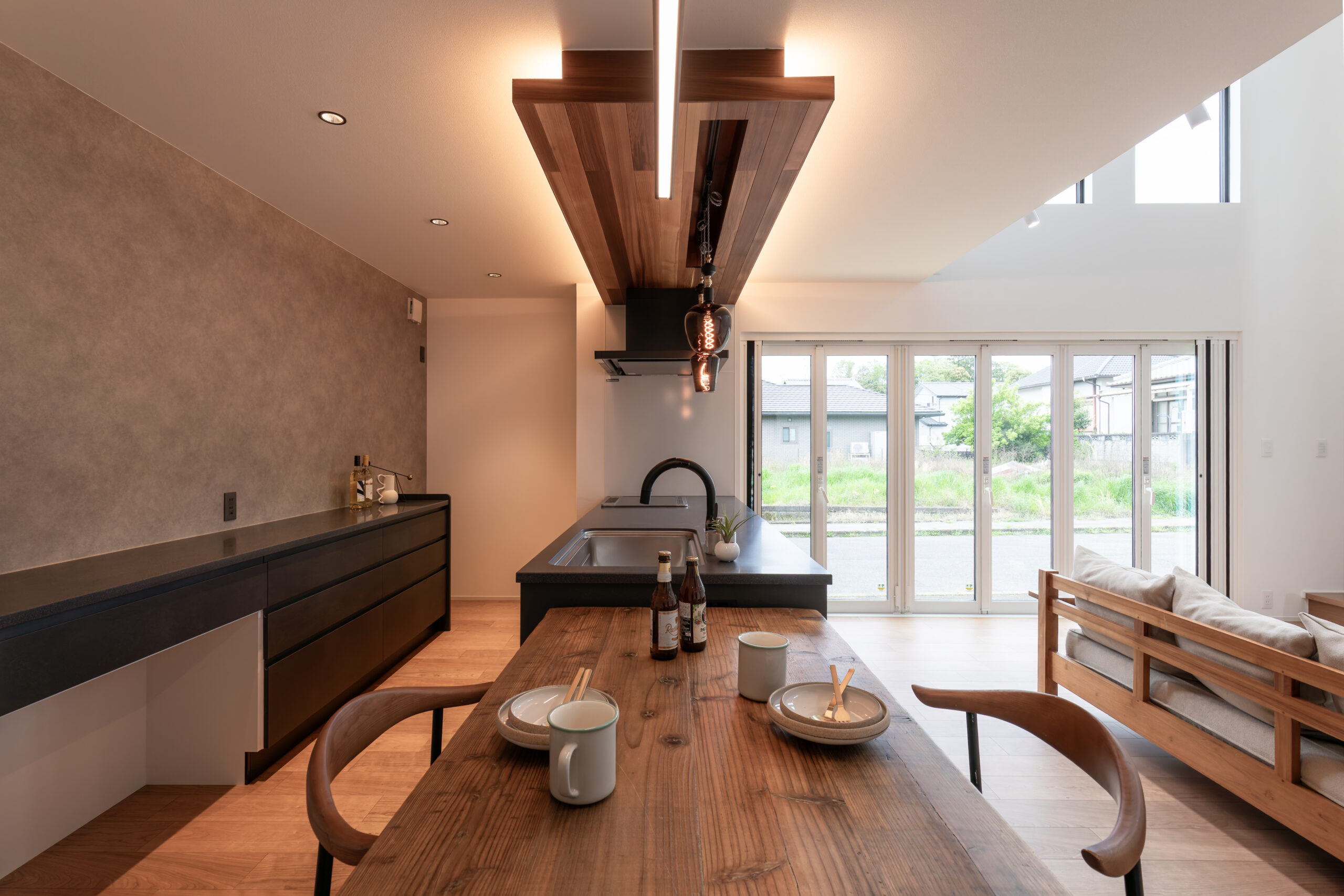 上質なキッチンと木のぬくもりが調和する、平屋の住まい